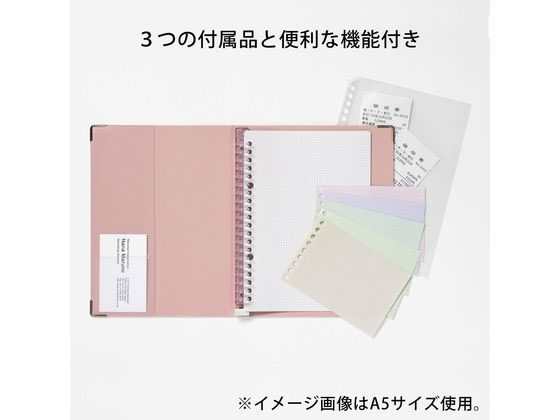 ●付属品:3mm方眼罫ルーズリーフ10枚、5mm方眼罫くすみカラーアソートミニサイズ5枚、サイドインクリアポケット1枚