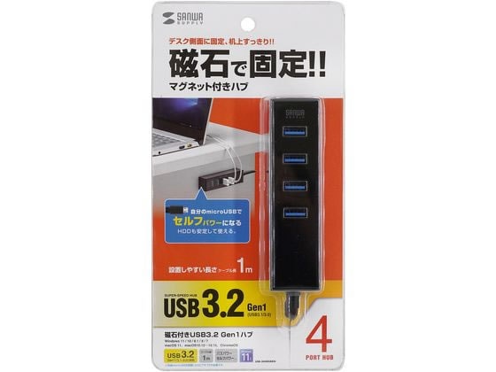 【お取り寄せ】 サンワサプライ 磁石付USB3.2 Gen1 4ポートハブ USB-3H405BKN USBハブ ドッキングステーション PC周辺機器 パソコン 家電