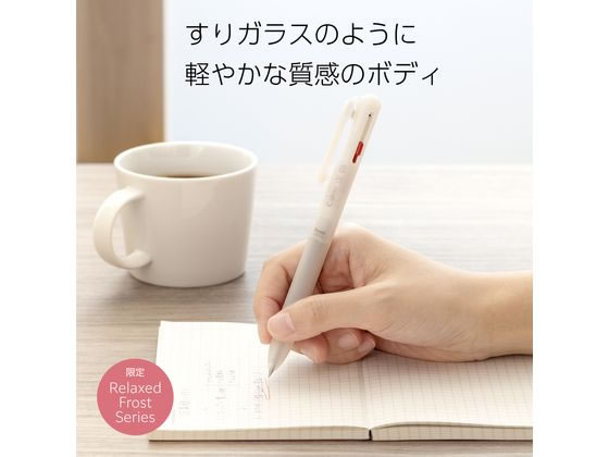 静かなノック感・革調のロンググリップ・マットな質感を備えた、なめらか油性ボールペンです。日常的に使う油性ボールペンだからこそ、自分が心地よく使えるのはもちろん、周りの人や環境にもなじむように配慮した設計になっています。