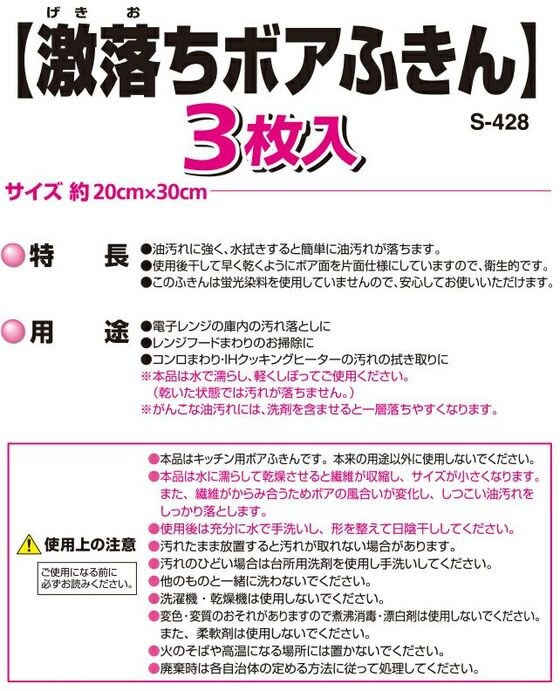 ・本品はキッチン用ボアふきんです。本来の用途以外に使用しないでください。