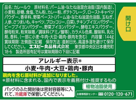エスビー食品 とろけるカレー 中辛 144g カレールゥ 料理の素 調味料 油 食品