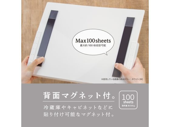 クリアファイルやA4変形サイズの雑誌も入るA4ワイドサイズのマグネット付収納ラック。