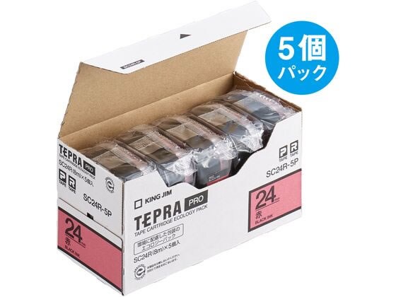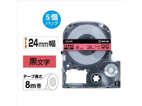 【お取り寄せ】 キングジム テプラPROテープ 24mm 赤/黒文字 5個 SC24R-5P 赤 レッド テプラPROテープ キングジム テプラ 事務機器