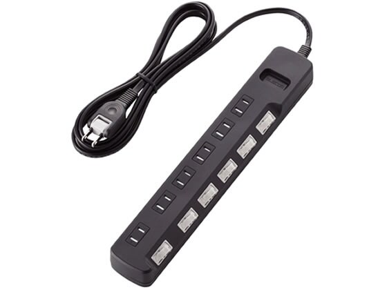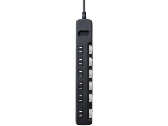 エレコム 埃シャッター付雷ガードタップ 6口 2.5m 黒 T-K6A-2625BK コード付き電源タップ2ピン 電源タップ OAタップ 配線パーツ 家電
