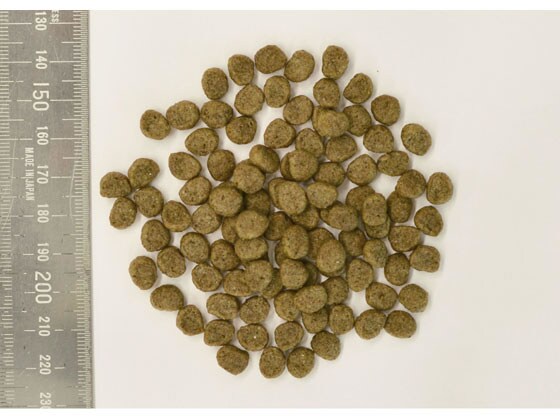 ●原材料名:ポテト、サーモンミール、ピー(エンドウ)、セルロースパウダー、ピー(エンドウ)たんぱく、トマトミール、ホワイトフィッシュミール、植物性油脂、フィッシュダイジェスト、ビートパルプ、ビタミン類(E、パントテン酸カルシウム、ナイアシン、A、D3、B2、ビオチン、K、B12、B1、B6、葉酸、コリン)、ミネラル類(Zn、Fe、Mn、Cu、Se、Ca、I、Co)、緑イ貝、レシチン、タウリン、グルコサミン、コンドロイチン硫酸、イノシトール、ユッカ抽出物、酸化防止剤(VC)、乾燥クランベリー、L- カルニチン、食塩、グレープシードエキス、トリプトファン