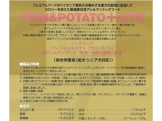 【お取り寄せ】 森乳サンワールド フィッシュ&ポテト プラスライト 肥満・関節に 2.4kg プレミアムフード 犬 ペット ドッグフード