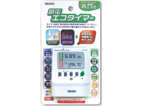 電気器具のスイッチを自動で”入/切”出来るタイマー機能と、消費電力や電気料金などがわかるエコ機能を併せ持ったタイマーです。