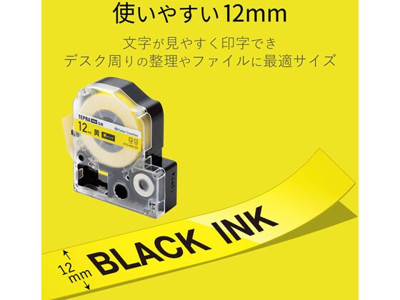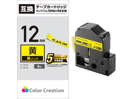 カラークリエーション テプラPRO互換テープ 12mm 黄黒字 CTC-KSC12Y