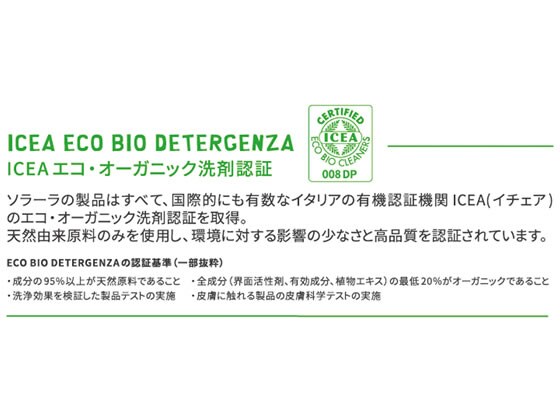 独自の植物由来洗浄成分と酸素のチカラで、泡切れよく油汚れすっきり。イタリア産オーガニックナタネ油由来の洗浄成分と酸素のチカラで油汚れすっきり。洗い流した後は生分解され自然に還ります。合成香料、着色料、硫酸系洗浄料、石油化学成分、動物由来成分、不使用。容器にバイオプラスチックを採用。オーガニックビターオレンジ精油のやさしい香りです。