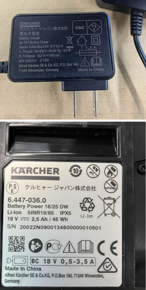 ●標準装備品:ハンドグリップ付きサクションホース、すきまノズル、スモールノズル、紙パック、筒型フィルター(固定ノブ付き)、バッテリーパワー(18V 2.5Ah)、充電アダプター