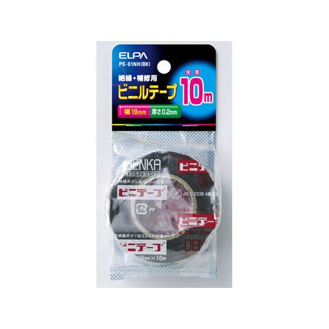 【お取り寄せ】 朝日電器 ビニールテープ 10M PS-01NH(BK) 黒 ビニールテープ 一般用途 粘着テープ 梱包
