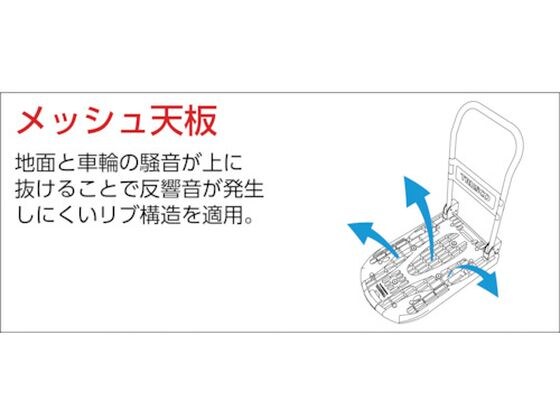 ●メッシュ構造+エアーキャスターの採用により軽量化を実現しました。取り回しが軽く操作性・静音性に優れた台車です。