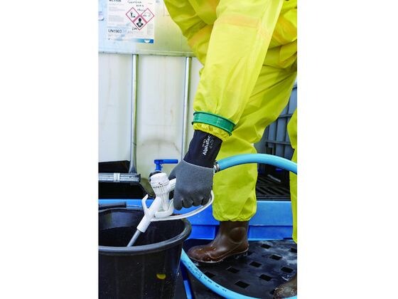 ●ニトリル/ネオプレン/ニトリルという3層構造により、酸や塩基から炭化水素や有機溶媒までの幅広い化学物質に対する化学的保護を提供します。
