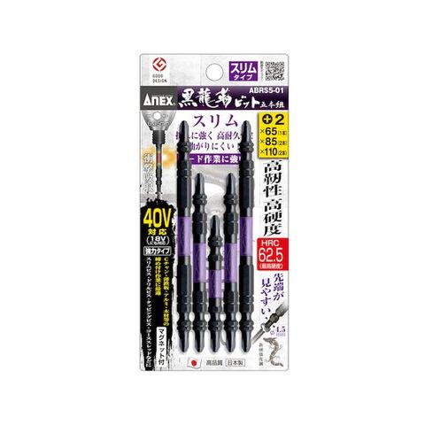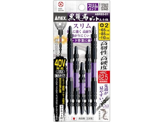 【お取り寄せ】 アネックス 黒龍靭ビット スリムタイプ 5本組 アソートセット ABRS5-01 ドライバービット 作業用品 工具