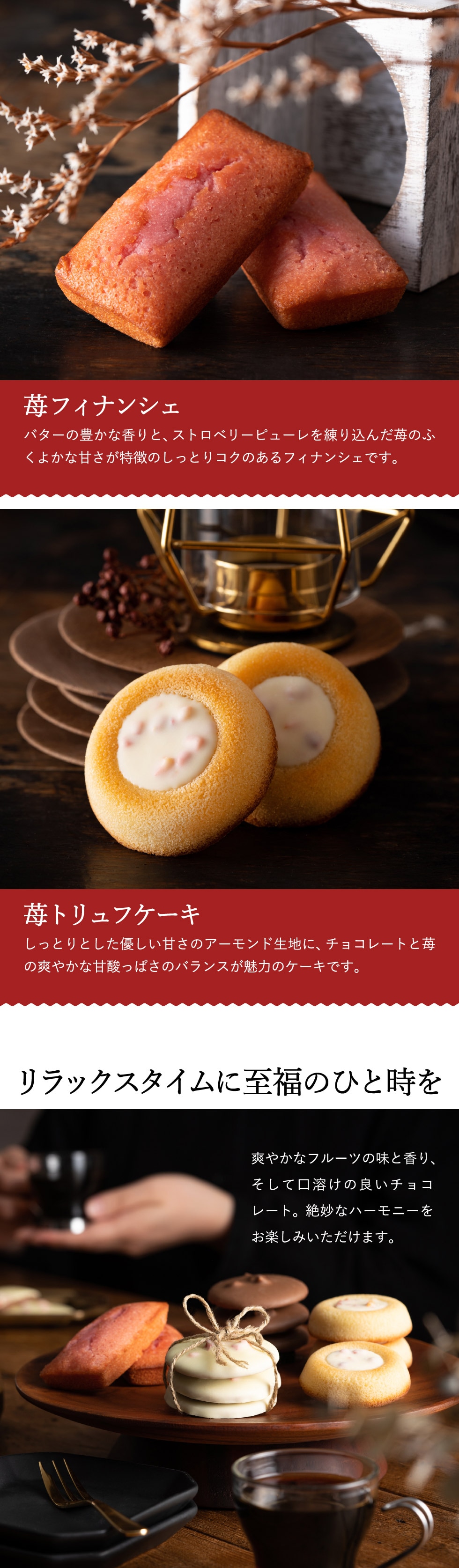 ●ショコラサブレ(ミルク&清見オレンジ、ホワイト&苺×各2)、苺フィナンシェ×3、苺トリュフケーキ×2