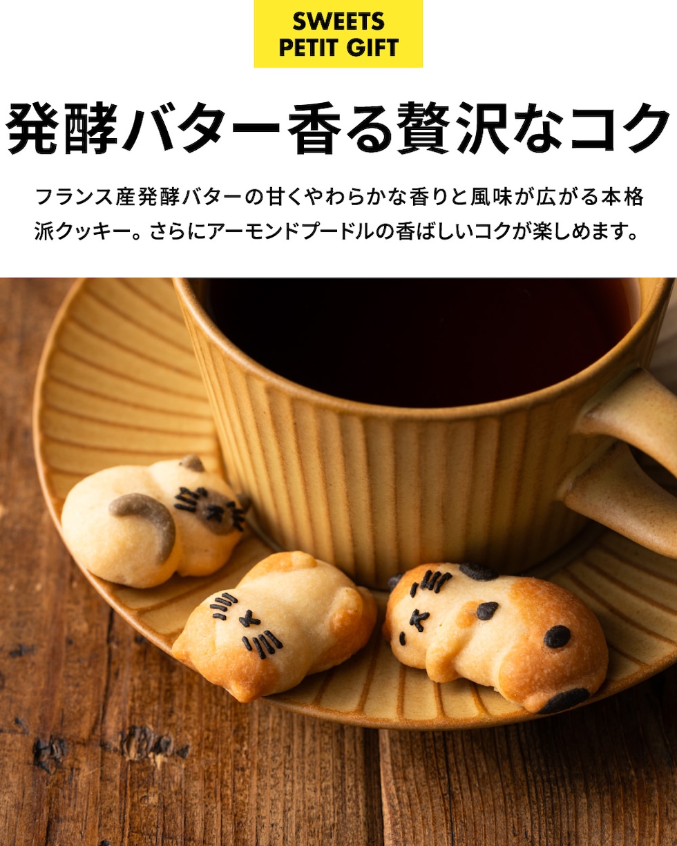 ホワイトデー お返し ギフト おひるねにゃんこはバタークッキーの香り / のし包装メッセージカード不可 お菓子 スイーツ クッキー 焼き菓子 洋菓子 プチギフト かわいい ねこ 猫 内祝い 出産内祝い 結婚内祝い 引っ越し 引越し 退職 職場 挨拶 お礼 JGS / ほんの気持ちです 入学内祝い