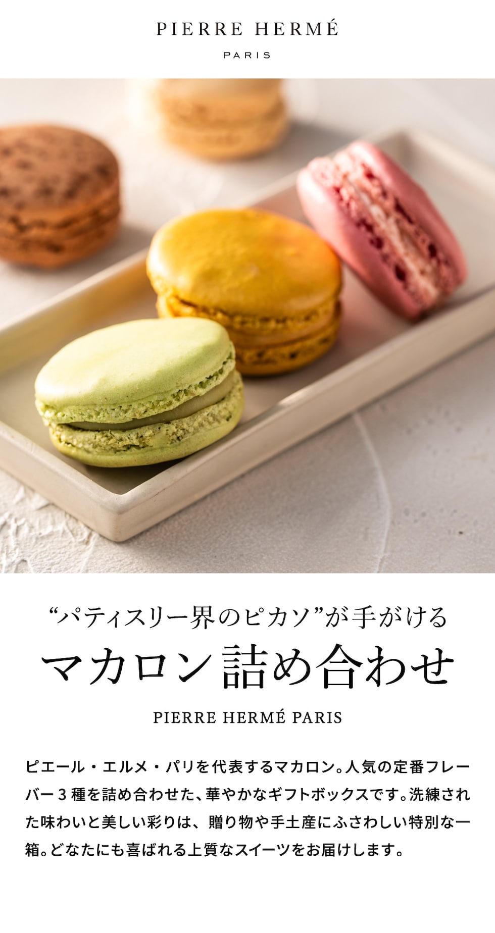 ギフト 送料無料 ピエール・エルメ・パリ マカロン3個詰合せ メーカー直送 のし・包装紙・メッセージカード不可 / PIERRE HERME お菓子 スイーツ おしゃれ かわいい 贈答品 JGS 内祝い 父の日ギフト