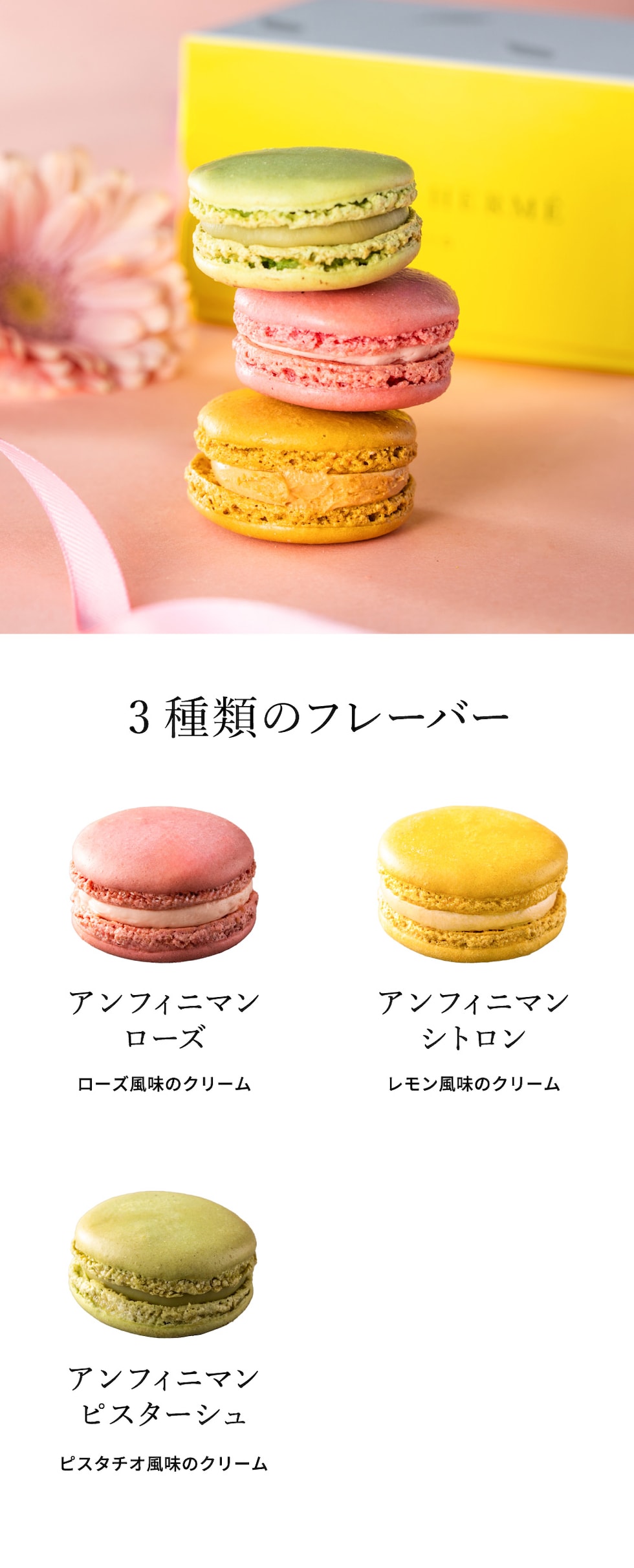●内容量:アンフィニマン シトロン・アンフィニマン ローズ・アンフィニマン ピスターシュ×各1個
