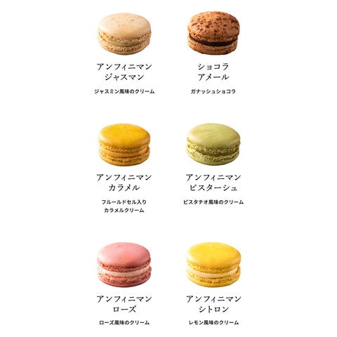 ●内容量:アンフィニマン カラメル・アンフィニマン ジャスマン・ショコラ アメール・アンフィニマン ピスターシュ・アンフィニマン シトロン・アンフィニマン ローズ×各1個