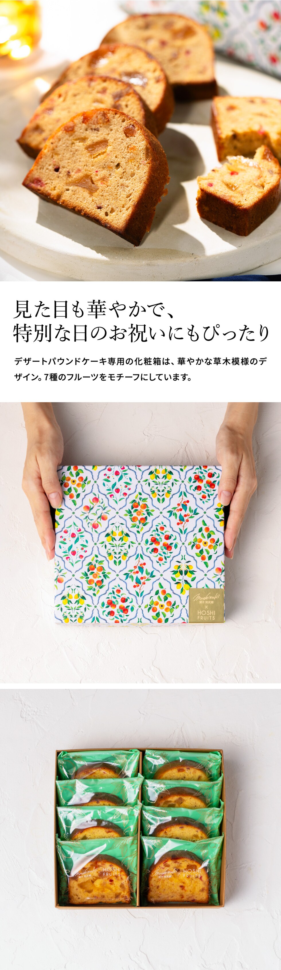 お菓子 内祝い 望月シェフ×ホシフルーツ 7種のフルーツが詰まった「デザートパウンドケーキ」8個 MOA-03A / スイーツ 洋菓子 フルーツケーキ セット 手土産 おしゃれ 個包装 小分け お祝い 内祝い 出産内祝い 結婚内祝い 誕生日 プレゼント gws お歳暮