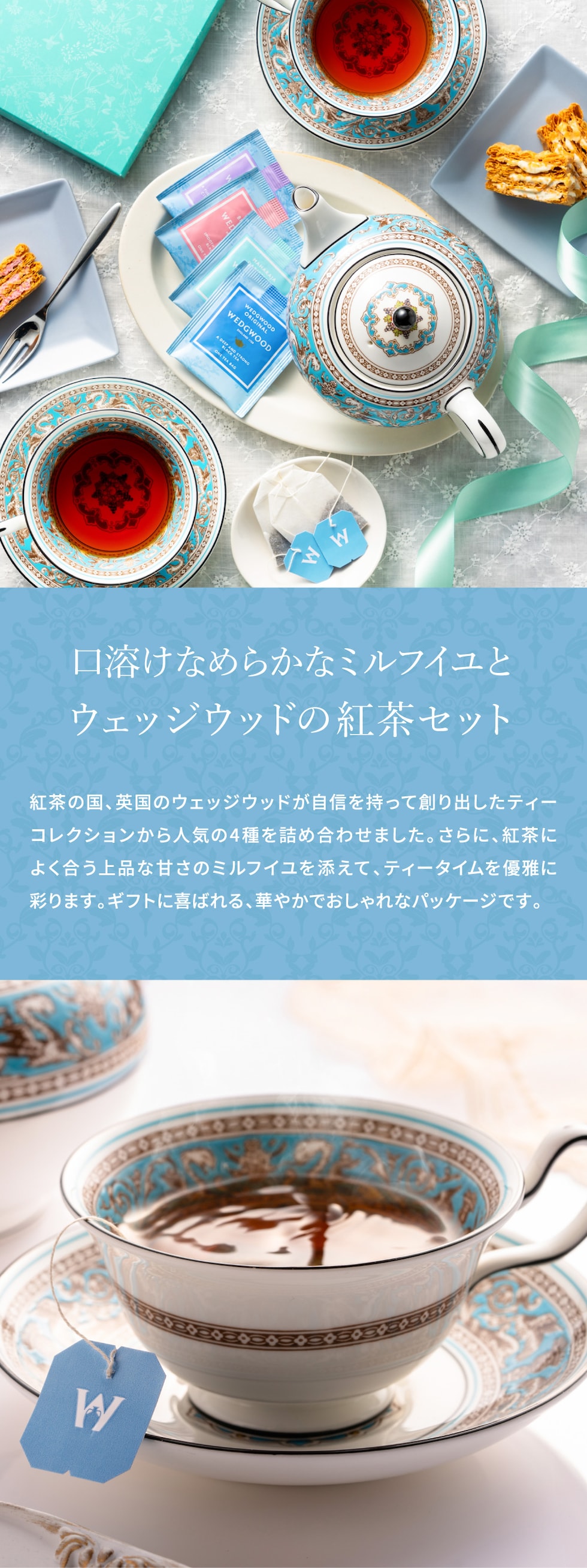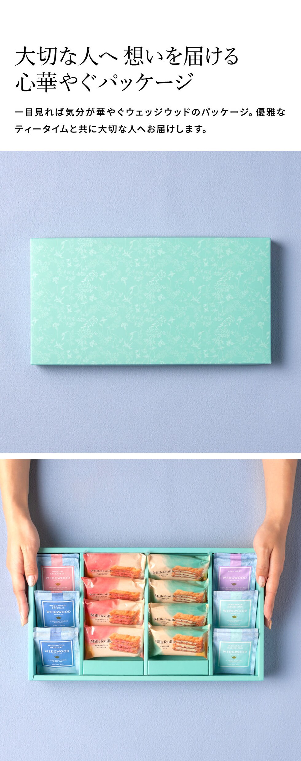 お菓子 内祝い ミルフイユ&ウェッジウッドティーバッグセット 20個 WWJ-04A / スイーツ 洋菓子 ミルフイユ ミルフィーユ ティーバッグ 紅茶 手土産 おしゃれ 個包装 小分け お祝い 内祝い 出産内祝い 結婚内祝い 誕生日 プレゼント gws お歳暮