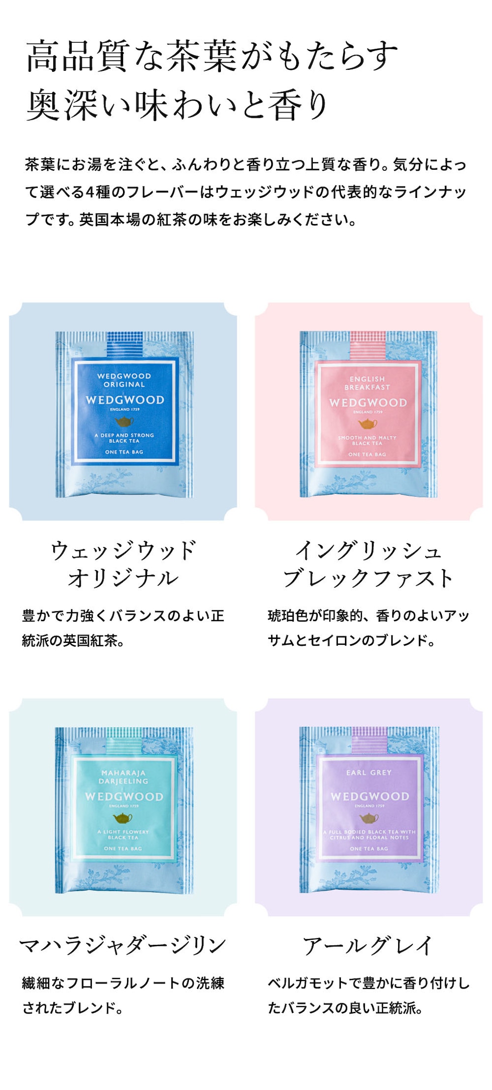 ●内容量:ミルフイユ(バニラ・フランボワーズ×各4)、紅茶(イングリッシュブレックファスト・アールグレイ・オリジナル・マハラジャダージリン×各3)※ミルフイユはウェッジウッドの商品ではありません。