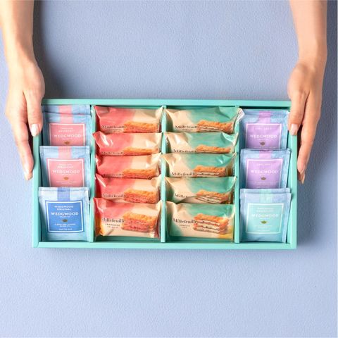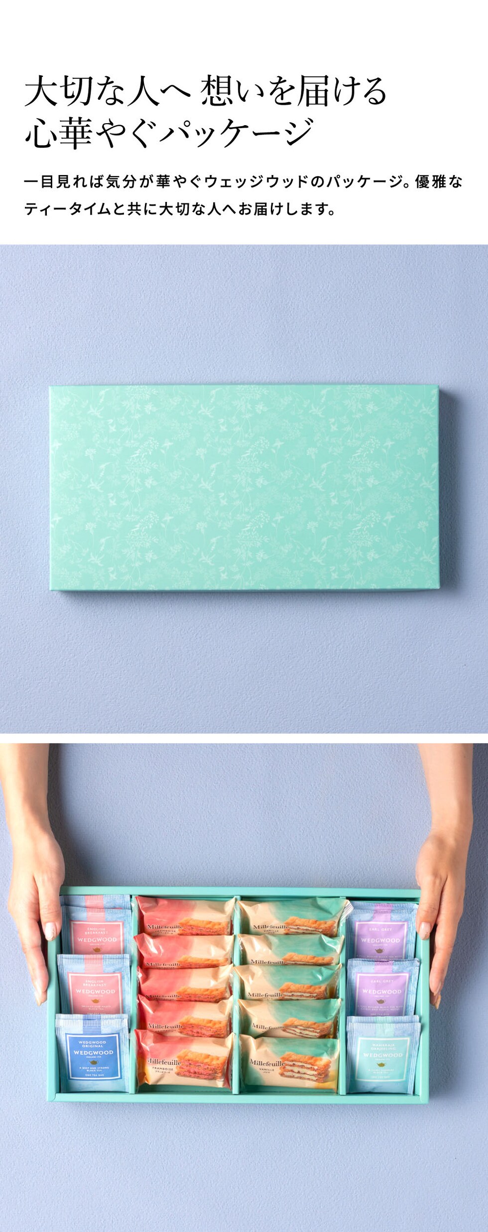 お菓子 内祝い ミルフイユ&ウェッジウッドティーバッグセット 24個 WWJ-05A / スイーツ 洋菓子 ミルフイユ ミルフィーユ ティーバッグ 紅茶 手土産 おしゃれ 個包装 小分け お祝い 内祝い 出産内祝い 結婚内祝い 誕生日 プレゼント gws お歳暮