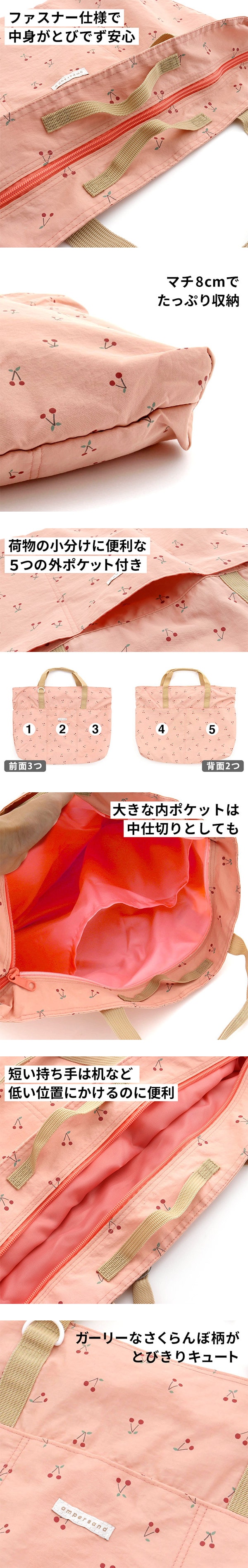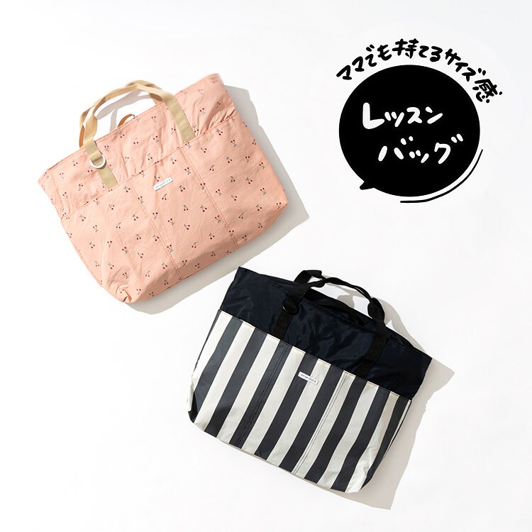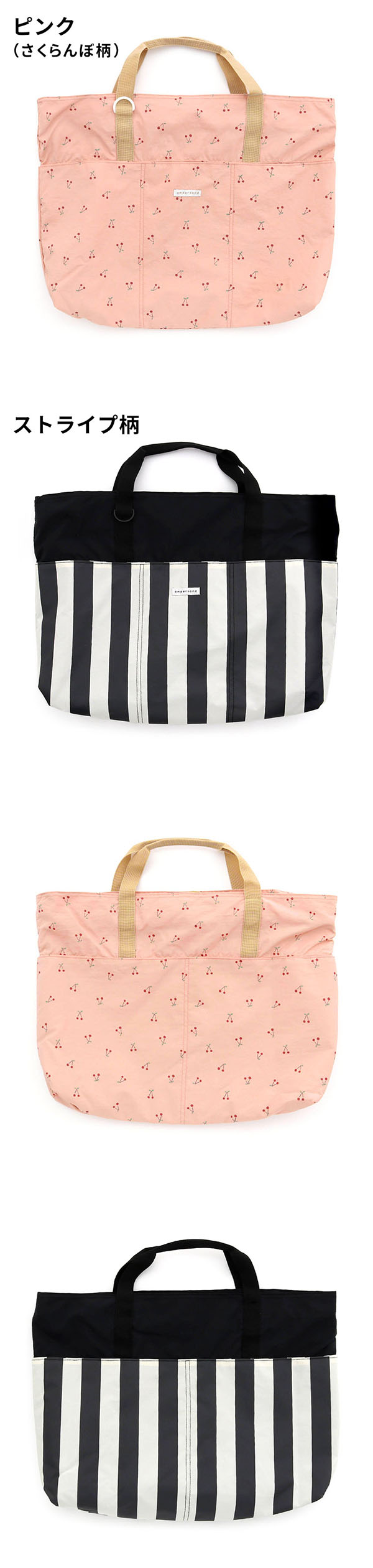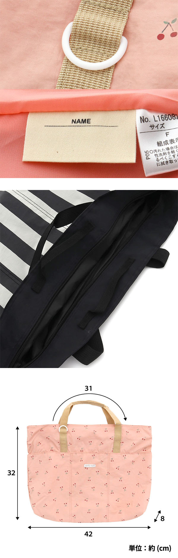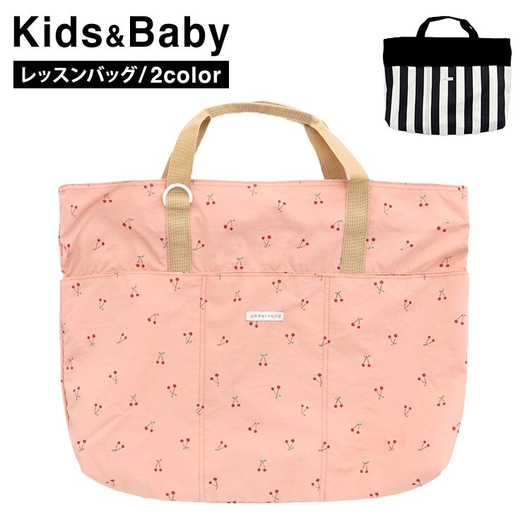 キッズ トートバッグ ナイロン [ 2柄レッスンバッグ ] 手提げバッグ 男の子/女の子 子供 保育園/幼稚園/小学生 入園準備/入学準備 入園バッグ 習い事バッグ かわいい モノトーン さくらんぼ柄 ボーダー ストライプ マチ付き ファスナー付き 子供服 / F