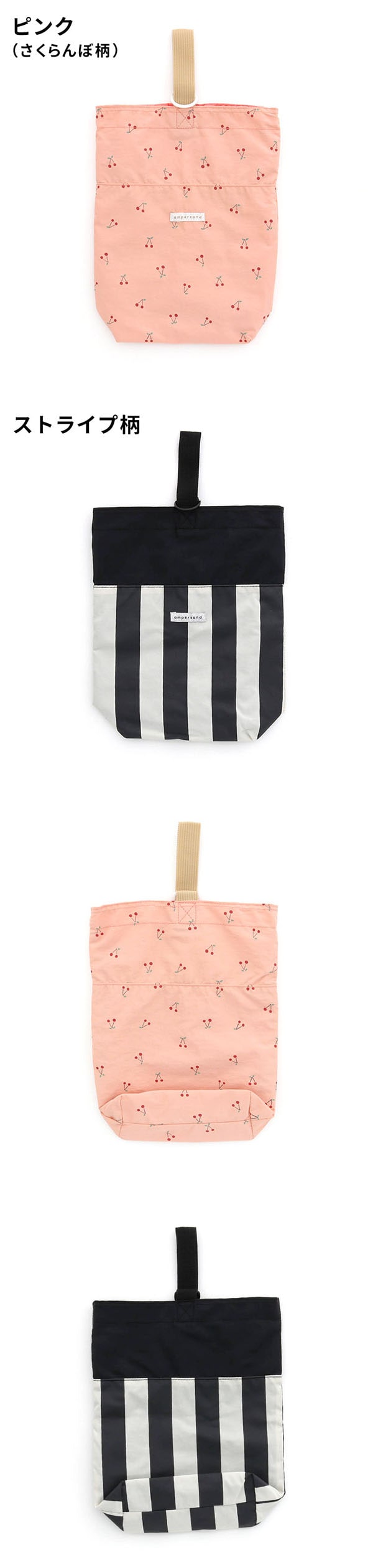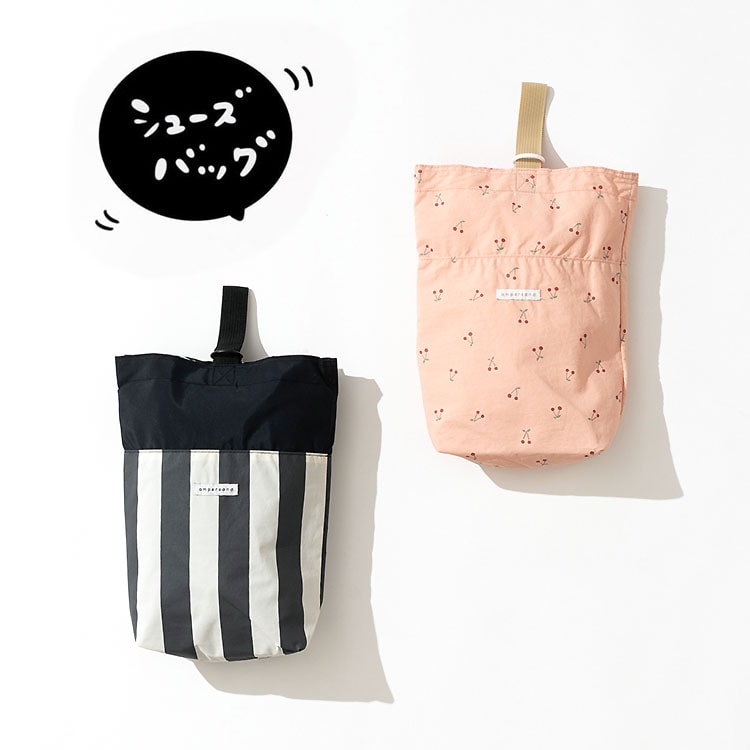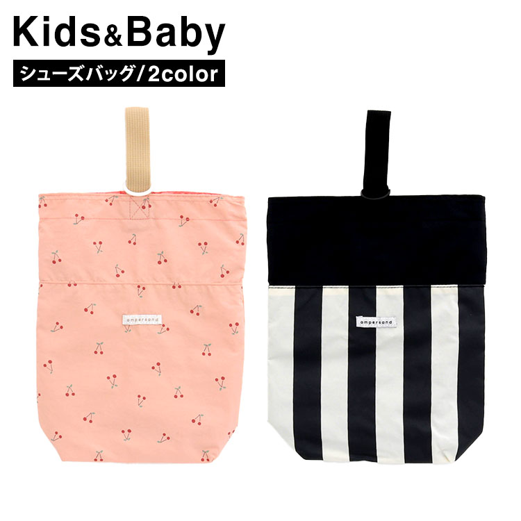 キッズ 上履き入れ ナイロン [ 2柄シューズバッグ ] 上履き袋 男の子/女の子 子供 保育園/幼稚園/小学生 入園準備/入学準備 靴入れ かわいい モノトーン さくらんぼ柄 ボーダー ストライプ マチ付き 子供服 / F