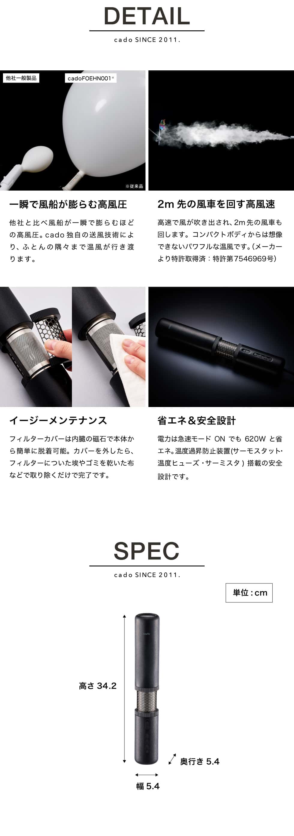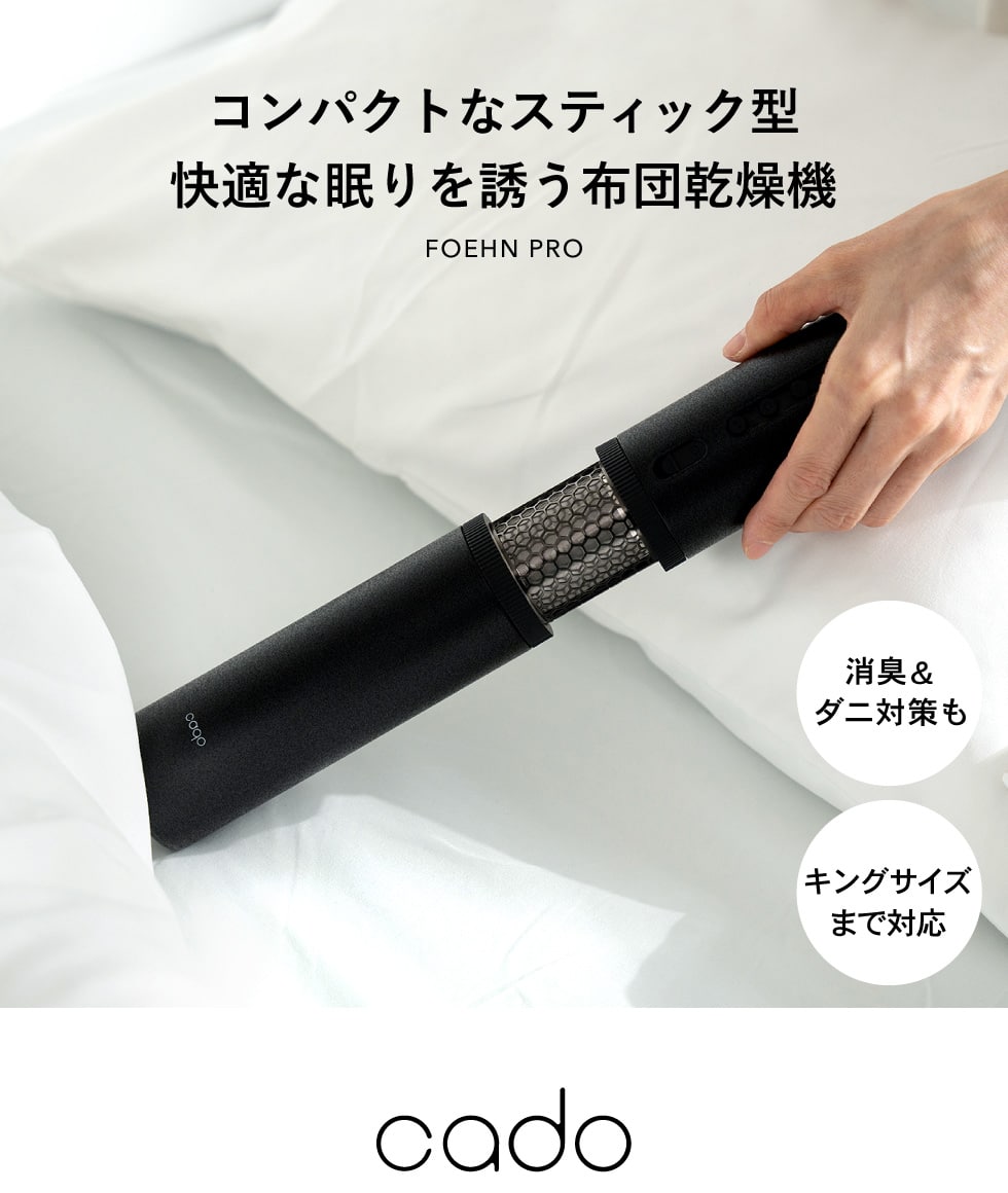 2024年最新モデル 送料無料 cado 布団乾燥機 カドー FOEHN PRO ストーンブラック FEN-P01 / スティック型 コンパクト パワフル 静音 ふとん乾燥機 温め あたため 睡眠 ダニ対策 ダニ退治 トコジラミ 省エネ 軽量