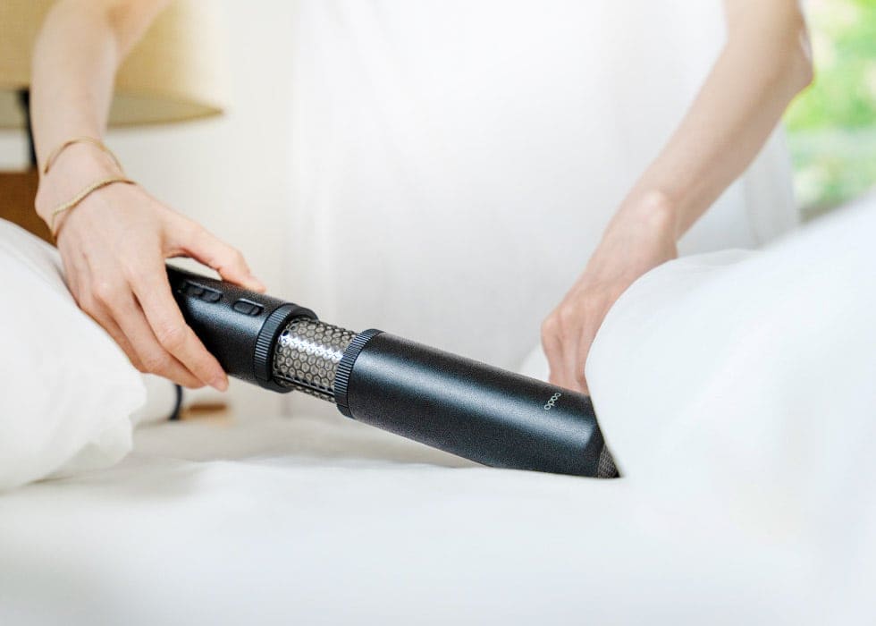 スリムなスティック型で軽量なので、片手でスマートに持ち運びできます。家族の分や来客時など、複数の布団を乾燥させる場合もラクラク。旅行や出張先でも邪魔にならないコンパクトサイズです。