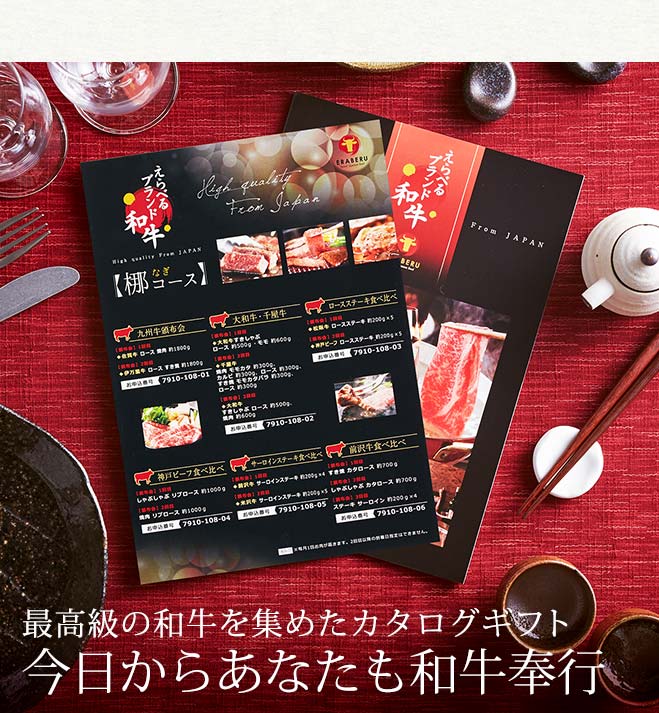 こちらは、日本で初めての和牛専門のカタログギフト。三大銘柄牛の代名詞「松阪牛」を筆頭に北は前沢牛から南は鹿児島黒牛まで、 人気の13のブランド和牛を日本全国から厳選しました。 また焼肉にすき焼き、牛しゃぶなど、高級な牛肉を使ったお料理は、大勢で食べることが多いかと思います。 牛肉を贈りすれば、家族みんなで食卓を囲み、美味しく楽しいひとときを過ごしていただけるはず。 そんな幸せで贅沢な時間をもお届けする、カタログギフトです。 |