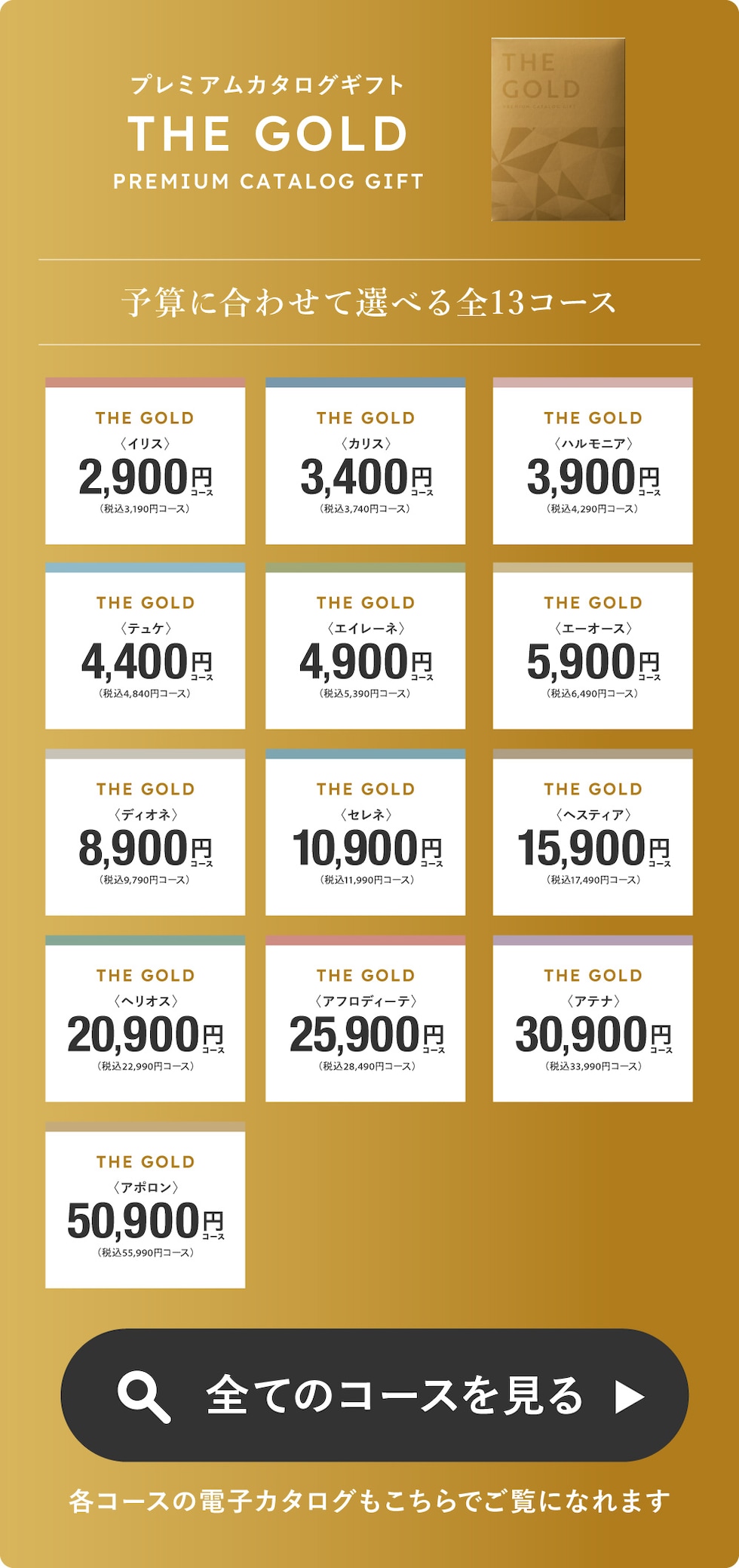 当店で人気のプレミアムカタログギフトシリーズに、最上級モデル「THE GOLD」が登場しました。