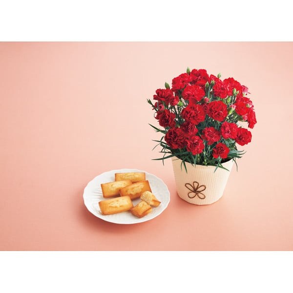 母の日 アンリ・シャルパンティエフィナンシェとカーネーションレッド4号セット メーカー直送 / F-26 送料無料 花 ギフト フラワーギフト 花とお菓子 花とスイーツ カーネーション 花鉢 生花 JGS 母の日ギフト2026