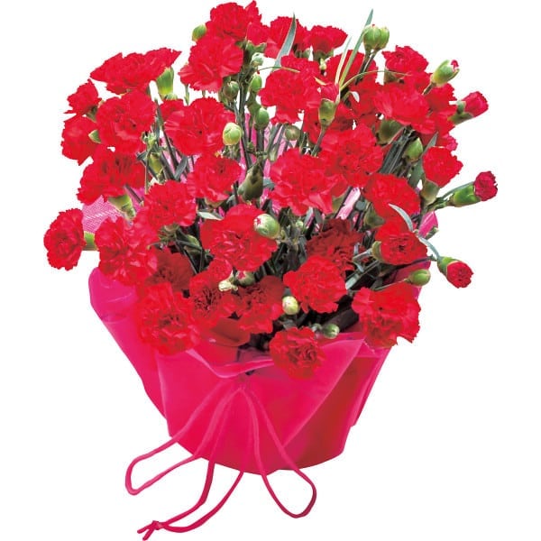 赤いカーネーションです。お母さんのそばで花を咲かせながら、感謝の気持ちをそっと伝えます。