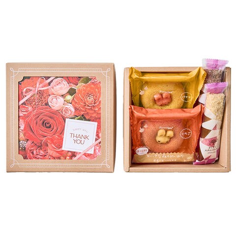 ●内容:クグロフ(クランベリーinストロベリー)・しっとりバームクーヘン(苺)・ケーク(フランボワーズ)・プチフィナンシェ(フランボワーズ)・いちごクランチ×各1個