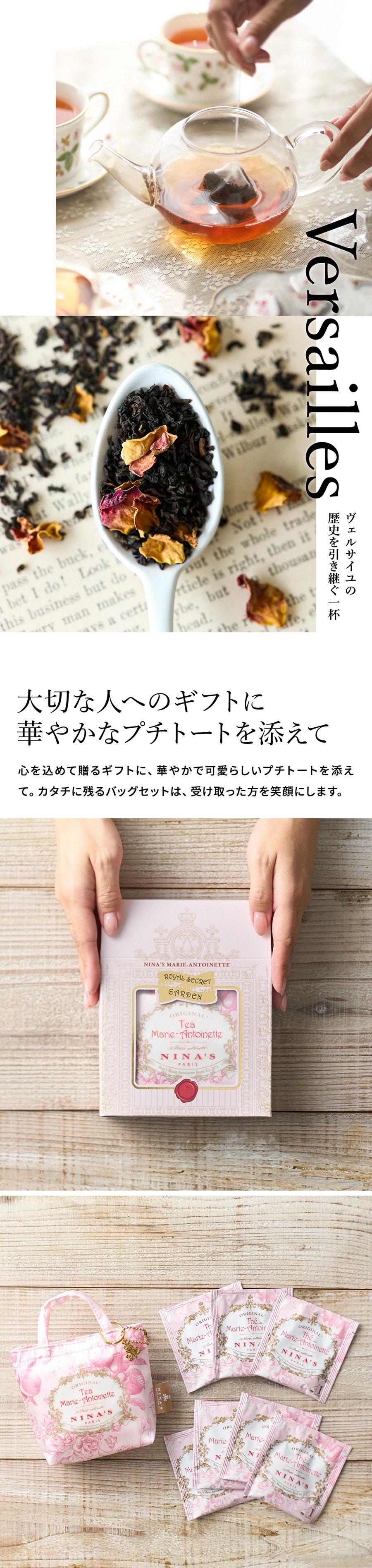 内祝い お返し 紅茶 ロイヤルシークレットガーデン NINA'S ニナス オリジナル マリー・アントワネット ティー(個包装ティーバッグ7個入) 0010599000 / 【包装不可 ご了承ください。】高級 フランス 可愛い 贈り物 誕生日 母の日 JGS バレンタインギフト 入学内祝い