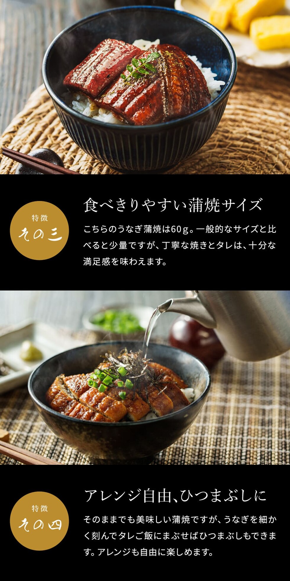 ●内容量:うなぎ蒲焼60g(国産・切身)×3、たれ20ml×3、山椒0.2g×3