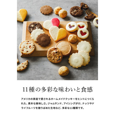 小麦粉(国内製造)、砂糖、バター、マーガリン(大豆を含む)、全卵、アーモンド、粉糖、ドライクランベリー、ブルーベリージャム、チョコレート、クランベリージャム、ココアパウダー、オートミール、キャラメルフレーク、グラノラ、食塩、マカダミアナッツ、カカオマス、シナモンパウダー、乾燥卵白、ラズベリー濃縮シロップ、バニラペースト、レモンパウダー、ジンジャーパウダー、オールスパイス/ソルビトール、膨張剤、香料、着色料(紅花黄、紅麹、赤102)、増粘多糖類(りんご由来)、酸味料、乳化剤、トレハロース、調整剤、乳酸Ca