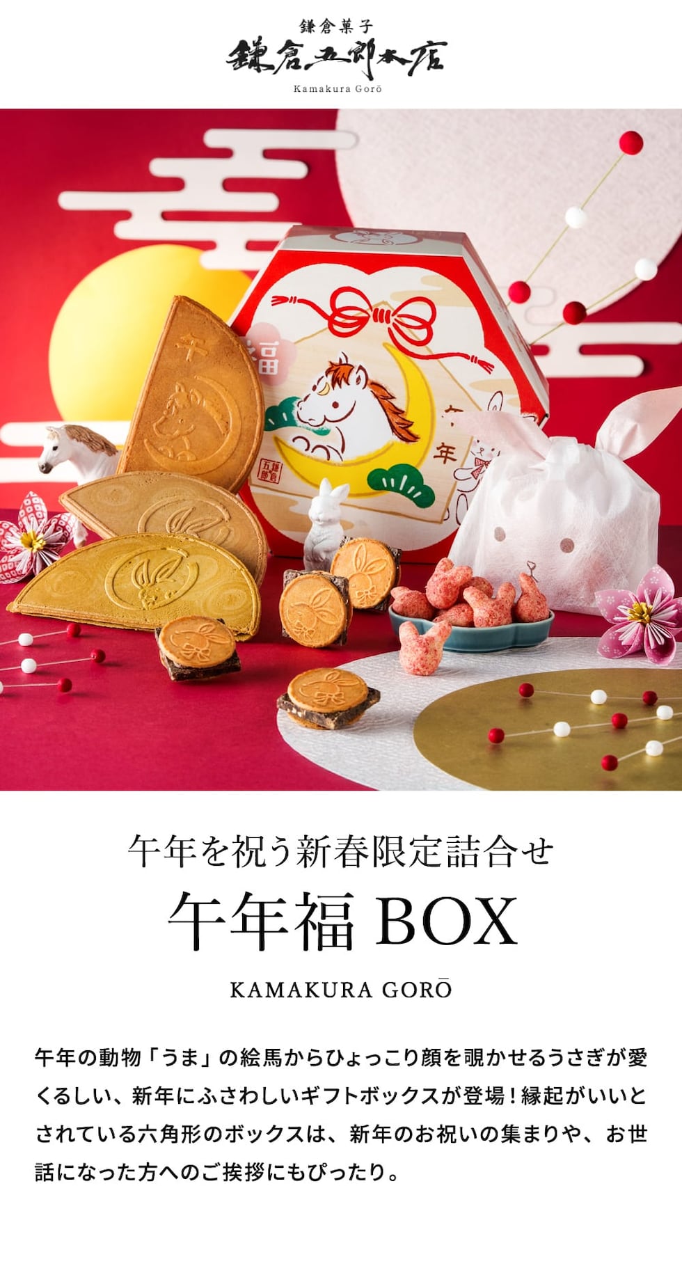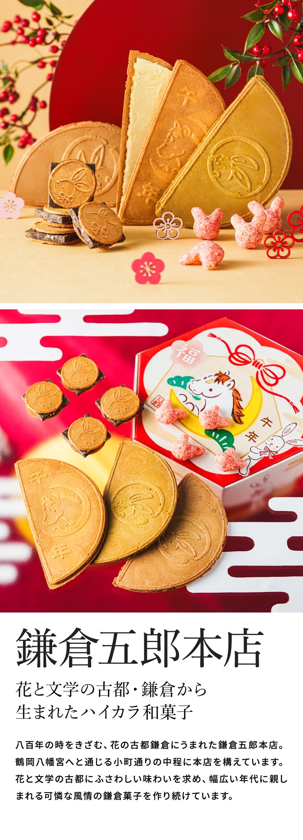 冬ギフト お菓子 ゴーフレット 鎌倉五郎 午年福BOX 福袋 / のし包装メッセージカード不可 鎌倉半月 チョコサンド 半月 和菓子 抹茶 小倉 栗きんとん おせんべい スイーツ かわいい 個包装 内祝い 出産内祝い 結婚内祝い スイーツギフト 贈り物 JGS ギフト バレンタインギフト 入学内祝い