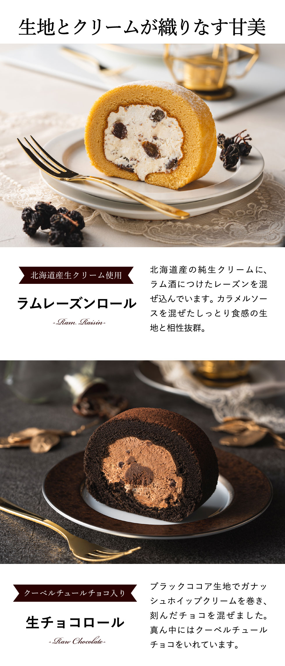 ●セット内容:ラムレーズンロールケーキ・チョコロールケーキ各12cm×1本