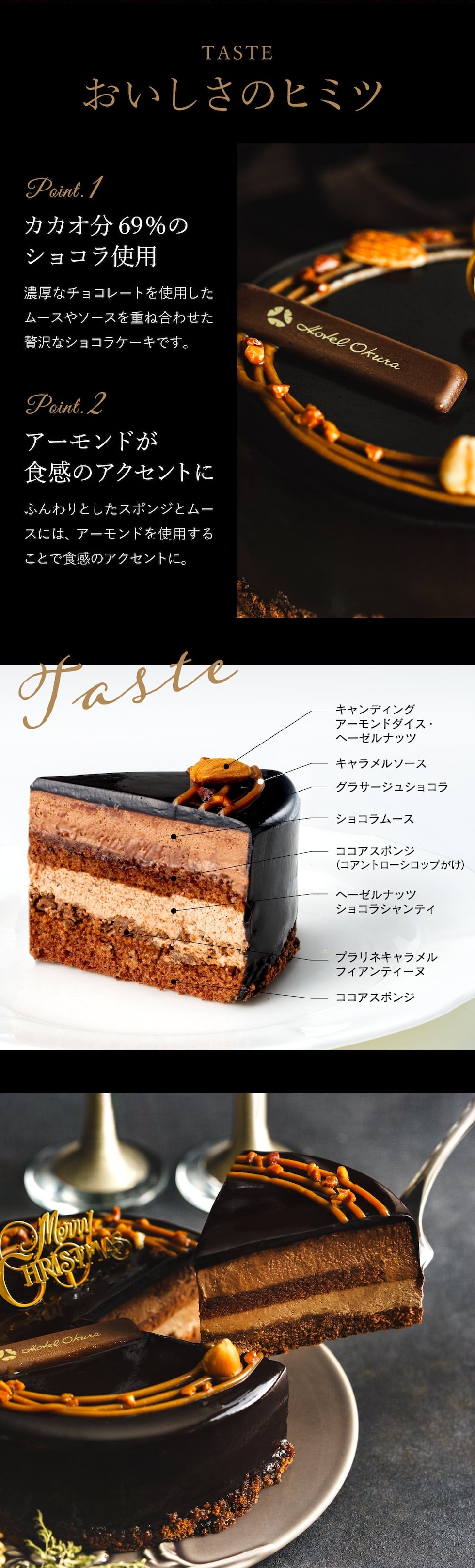 クリスマスケーキ 2025 ホテルオークラ キャラメルダブルナッツショコラ 5号 ホールケーキ チョコレートケーキ ベルギー産チョコの濃厚ショコラ×ナッツの食感 高級スイーツ メーカー直送 冷凍便 ※お支払いはクレジット・キャリア決済のみ 送料無料 / 12/23