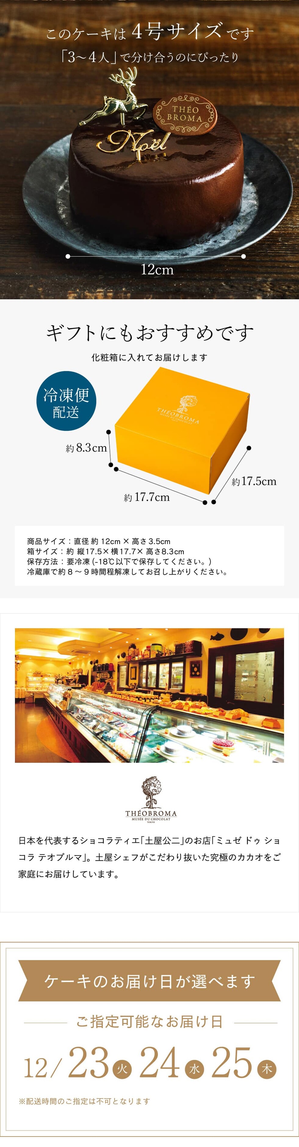 クリスマスケーキ 2025 theobroma テオブロマ ガトードゥノエル オ ショコラ 4号 ホールケーキ メーカー直送 冷凍便 ※お支払いはクレジット・キャリア決済のみ お届け日12/23~12/25 チョコレートケーキ クリスマス 人気 おすすめ 高級 ギフト 送料無料 / 12/25