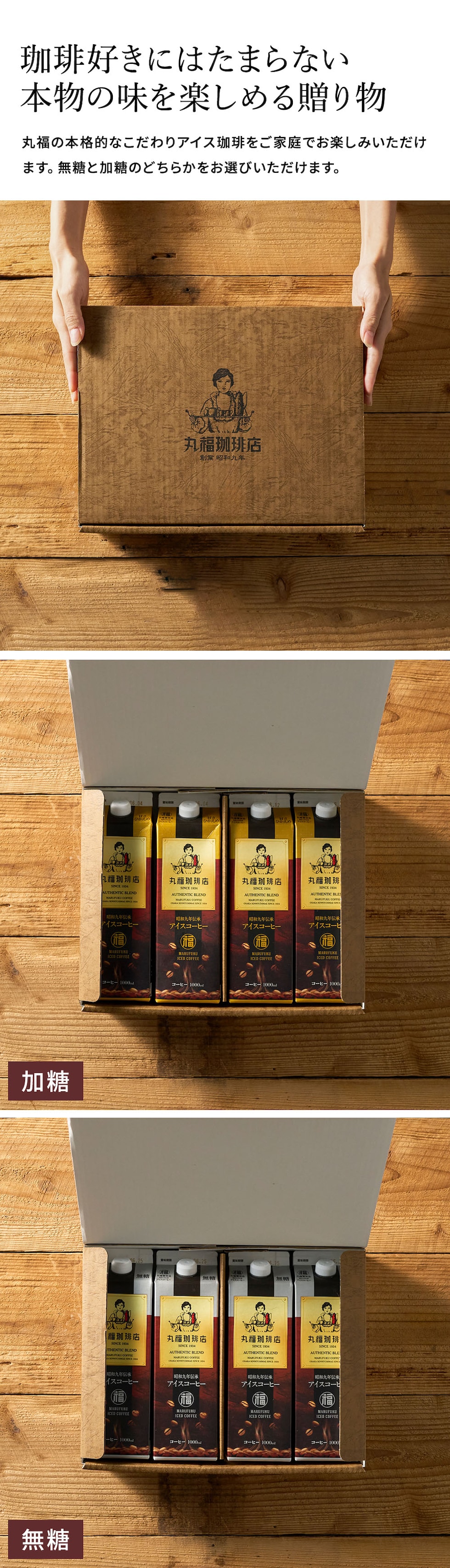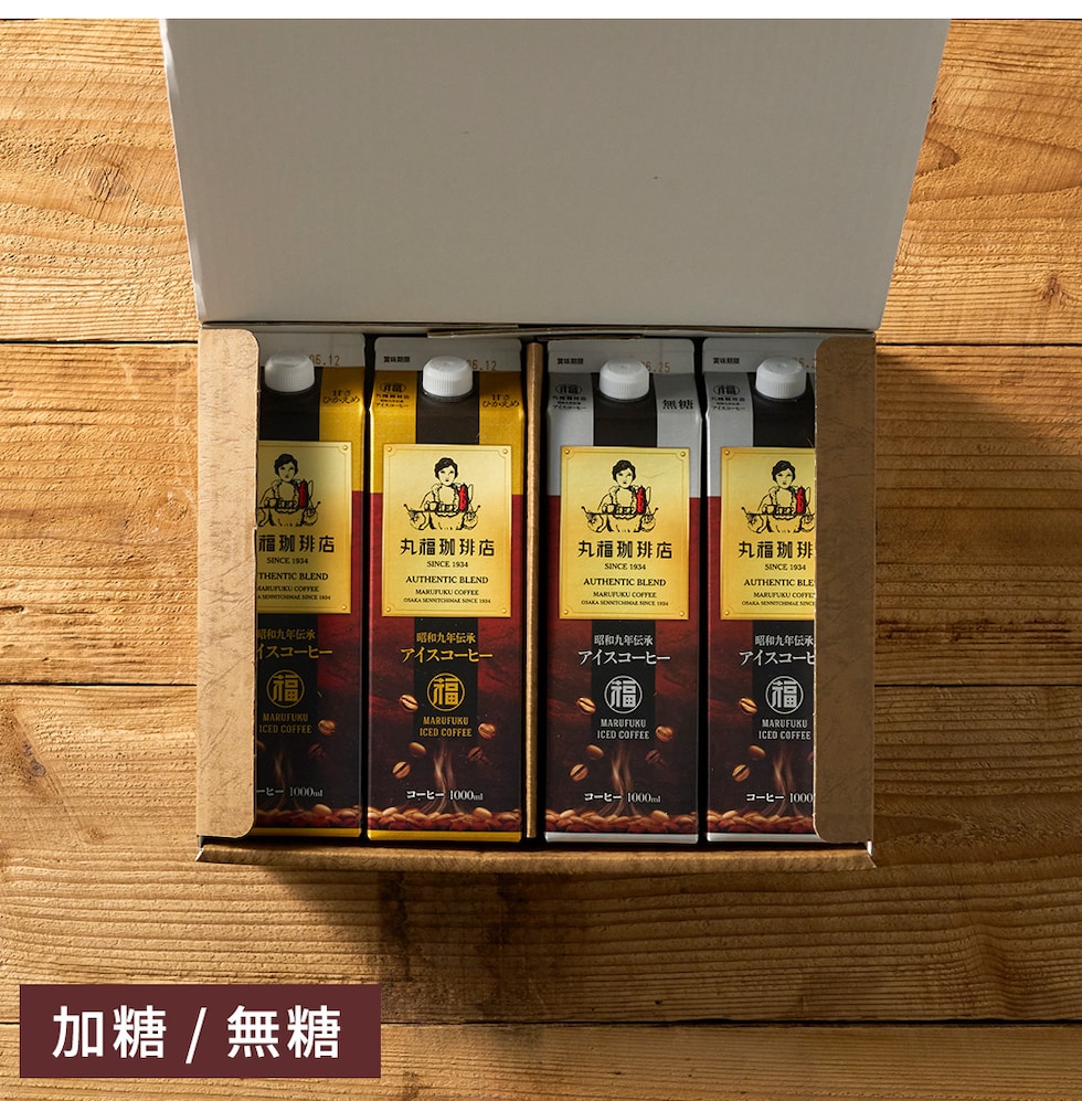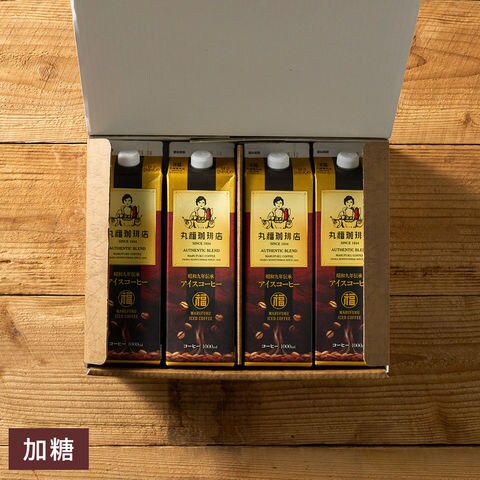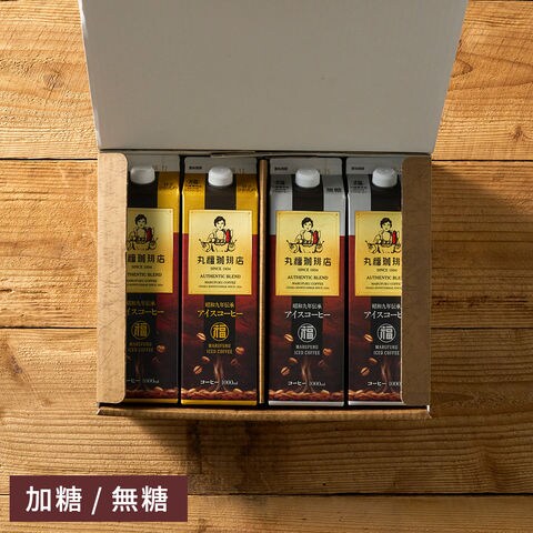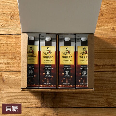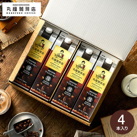 送料無料 コーヒー 丸福珈琲店 昭和九年伝承アイスコーヒー 紙パック 1L×4本セット 無糖 甘さひかえめ / ギフト コーヒーギフト ギフトセット プレゼント 内祝い お返し 出産内祝い 結婚内祝い 引き出物 引出物 手土産 香典返し お供え gws / 無糖4本