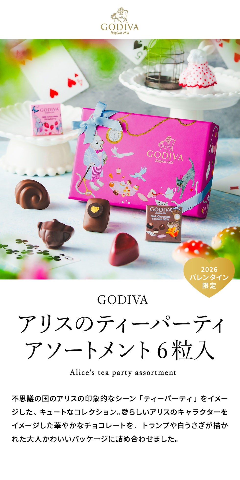 ゴディバ GODIVA アリスのティーパーティ アソートメント 6粒入 (209956) C-26 YR のし包装メッセージカード不可 お菓子 バレンタインチョコ チョコレート スイーツ おしゃれ ブランドチョコ 手土産 JGS バレンタインデー ホワイトデー バレンタイン ギフト 2026