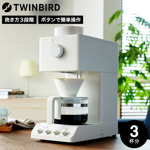 ツインバード 全自動コーヒーメーカー 3杯用 CM-D457W 送料無料 / TWINBIRD ミル付き 全自動 ドリップコーヒー 保温 コーヒー豆 紙フィルター / ホワイト