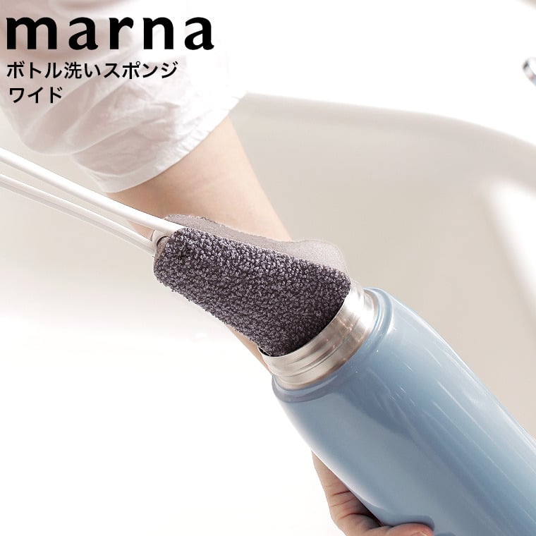 マーナ marna ボトル洗いスポンジ ワイド K757 / 水筒 冷水筒ポット 麦茶ポット 洗浄 柄つきスポンジ ハンドル付き 洗いやすい 水筒洗い 柄付きブラシ マグボトル ステンレスボトル洗い マイボトル タンブラー ミニボトル