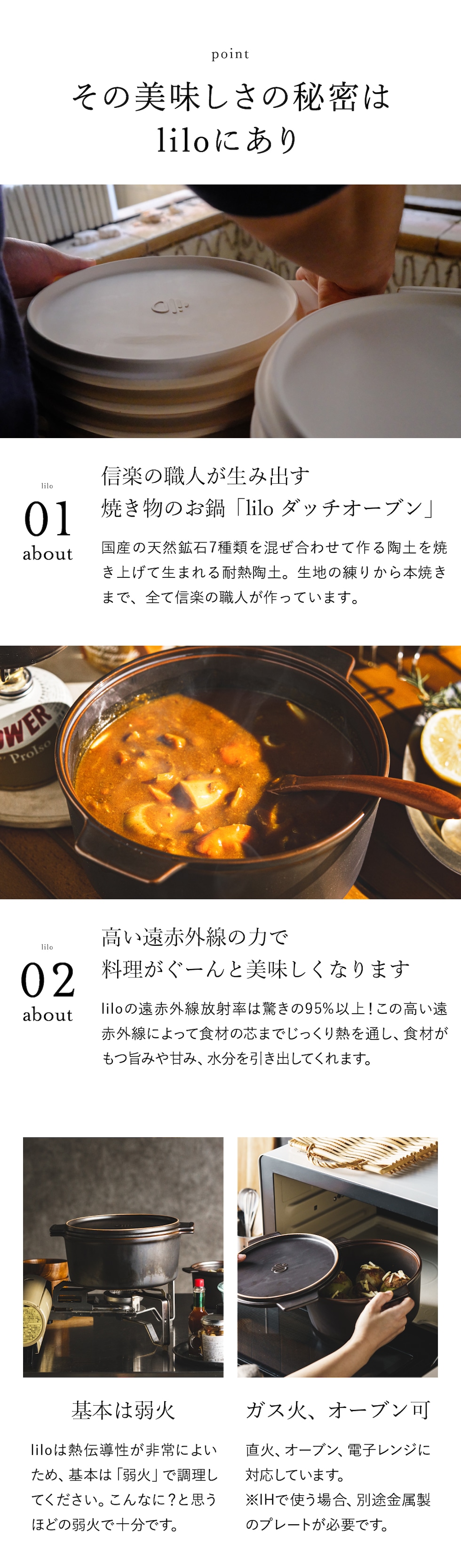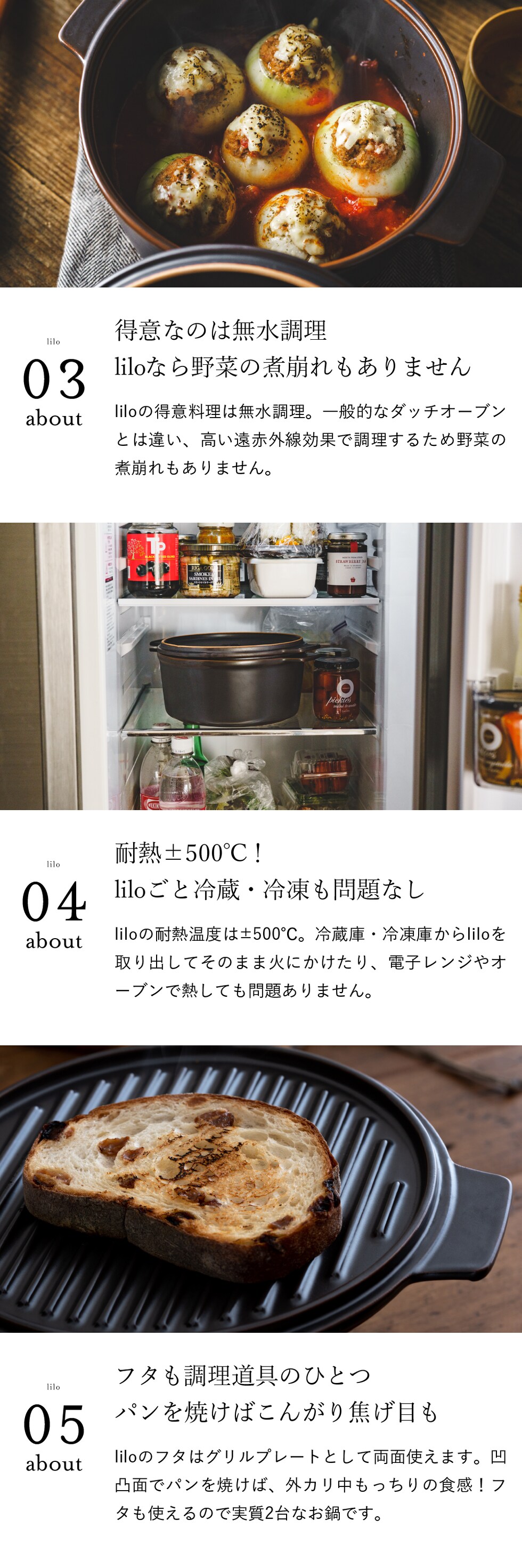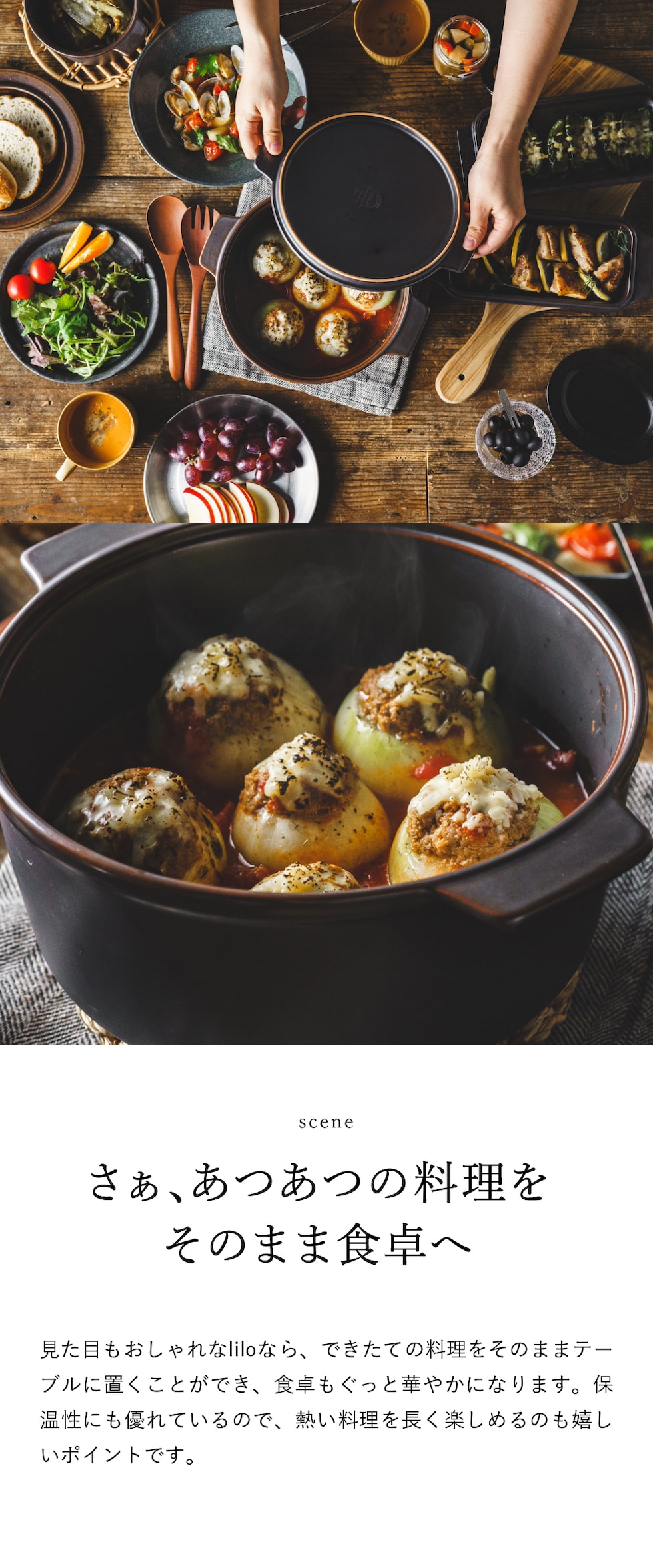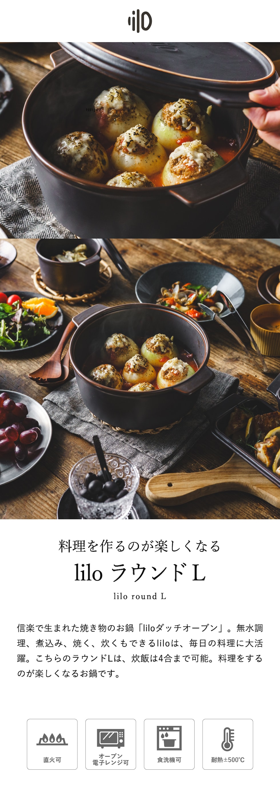 ダッチオーブン 無水調理鍋 リロ lilo round L 22cm 軽量 無水調理 キャンプ アウトドア キャンプ ソロキャンプ 耐熱陶器 陶磁器製 直火 電子レンジ可 オーブン可 食洗機可 送料無料