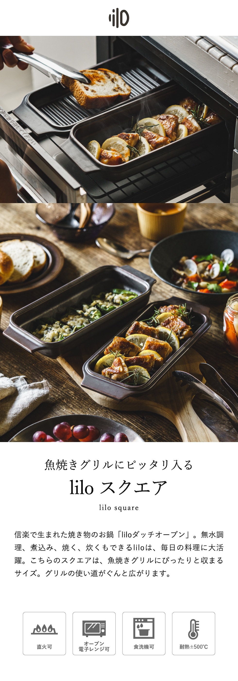 ダッチオーブン 無水調理鍋 リロ lilo square 軽量 無水調理 キャンプ アウトドア キャンプ ソロキャンプ 耐熱陶器 陶磁器製 直火 電子レンジ可 オーブン可 食洗機可 送料無料