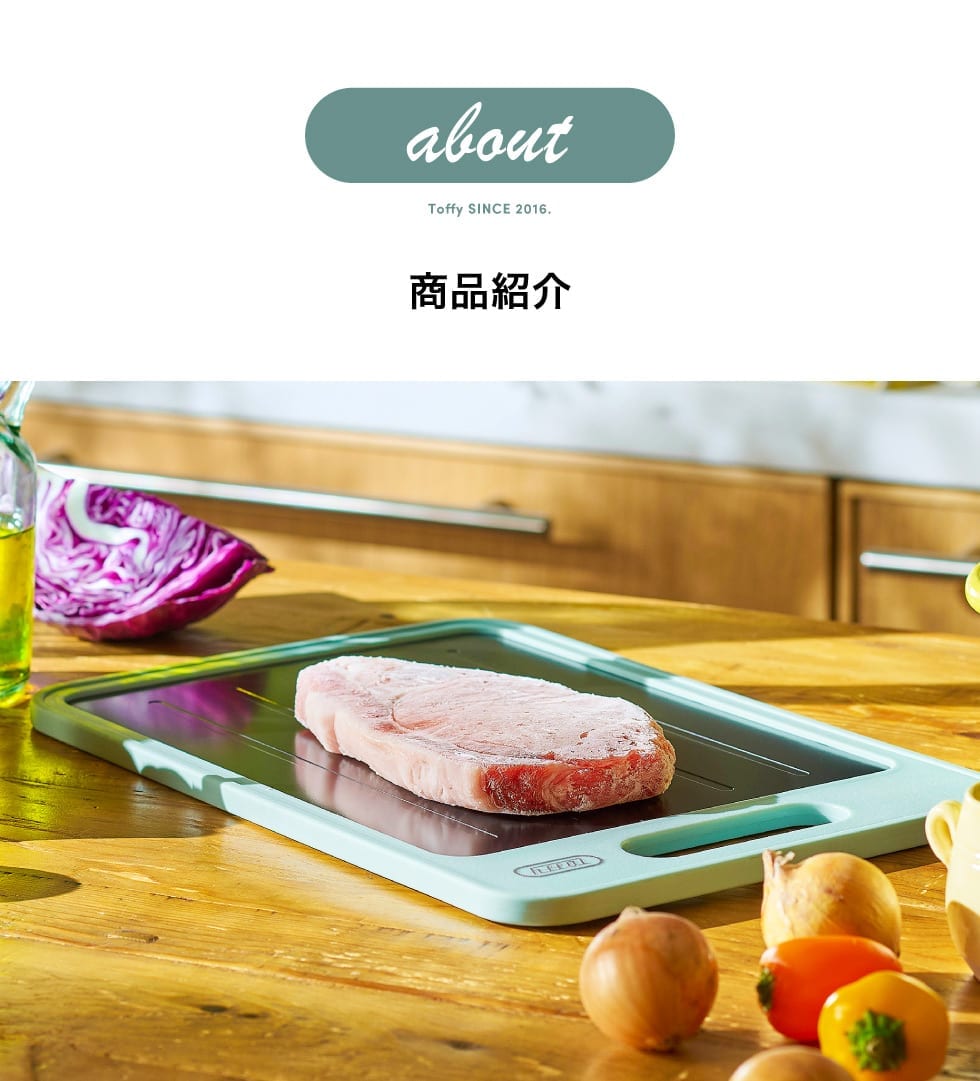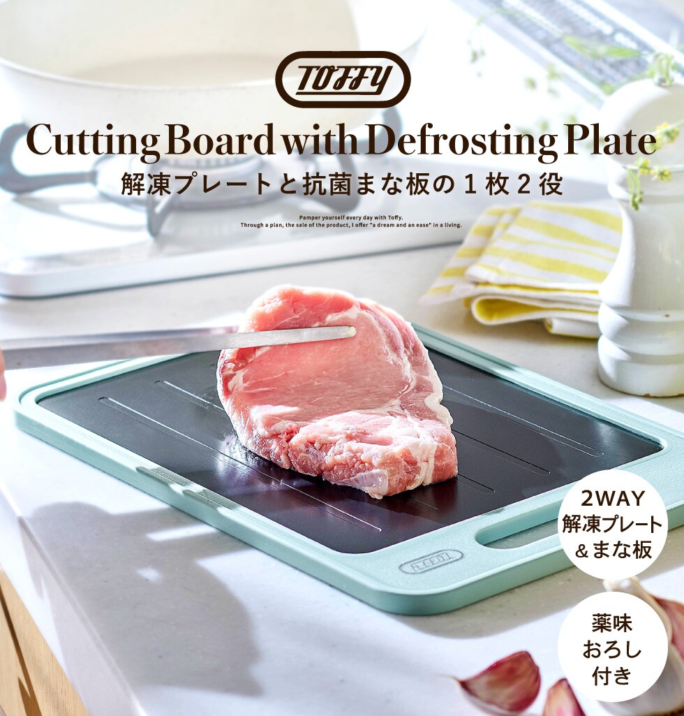Toffy トフィー 解凍プレート付きカッティングボード K-KU24-PA / 急速解凍 解凍皿 置くだけ アルミ プレート 両面 まな板 薬味 おろし器付き 食品解凍 肉 魚 野菜 時短 調理器具 キッチン用品 便利グッズ